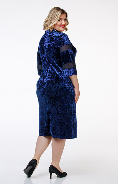 Очаровательное платье из эффектного креш-бархата и нежной сетки. Мягко лежащий воротник, изысканные рукава и свободное облегание. И в пир, и в мир!